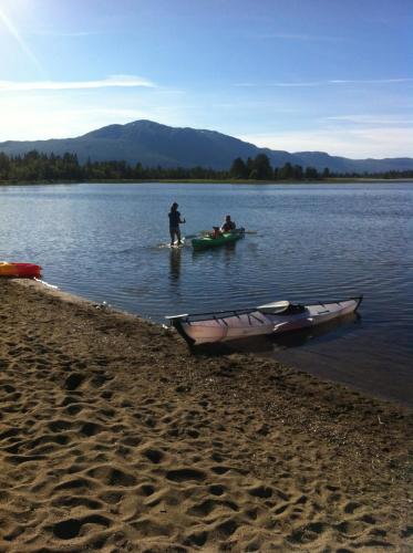 After a day of skiing, cycling, or hiking, guests can relax in the shared lounge area.