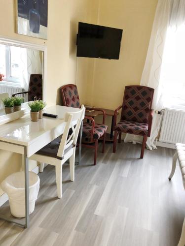 Det finns också tv och ett badrum med dusch.