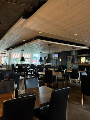 Den mysiga hotellrestaurangen och baren är inredda i trä. À la carte-menyn inkluderar en mängd olika svenska rätter.
