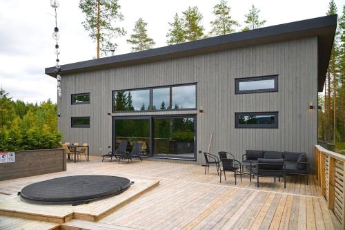 This luxurious holiday home provides a hot tub, a sauna and a fireplace. Boasting a private entrance, this air-conditioned holiday home comes with 4 bedrooms, 1 bathroom and a kitchen. Guests can make meals in the kitchen that features a stovetop, a refrigerator, a dishwasher and an oven. The spacious holiday home features a washing machine, tumble dryer, heating, as well as a terrace. The unit has 8 beds.