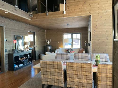 Boasting a sauna, Fjällstuga med vy is situated in Vemdalen. This property offers access to a patio and free private parking. Featuring free WiFi throughout the property, the non-smoking holiday home features a sauna. The holiday home with a terrace and mountain views has 3 bedrooms, 2 living rooms, a flat-screen TV, an equipped kitchen with a dishwasher and an oven, and 1 bathroom with a shower. There is also a seating area and a fireplace. A ski equipment rental service, ski-to-door access and a ski pass sales point are all offered at the holiday home, and guests can go skiing in the surroundings. The nearest airport is Sveg Airport, 83 km from Fjällstuga med vy.