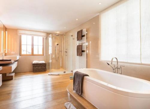 The air-conditioned chalet consists of 4 bedrooms, a living room, a fully equipped kitchen with a dishwasher and a coffee machine, and 4 bathrooms with a bath and bathrobes. A flat-screen TV with streaming services and a PS4 are featured. The chalet offers bed linen, towels, and dry cleaning service.